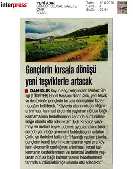 Kırsalda özellikle gençler için uygulanabilecek yeni teşvikler, destekler ve projeler kapsamında yapılabilecek her türlü çalışmanın içerisinde yer almak için hazır olduklarını anlatan Çelik, "Gençleri kırsala döndürmenin veya kırsalda tutmanın yolu küçükbaş hayvan yetiştiriciliğinden geçiyor. Böylece tarımın diğer kollarını da harekete geçirerek üretime önemli ölçüde katkı sağlanacak." dedi.